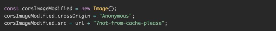 The issue comes from the way that Chromium caches the images. The way that the initial image is cached is – without the CORS headers. So next time when we want to fetch the image, with CORS headers – Chromium attempts to serve the image from the cache.